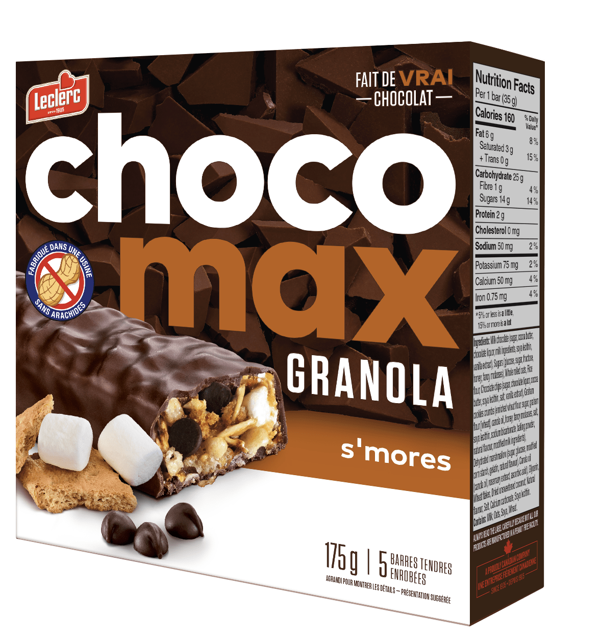 Barres enrobées de vrai chocolat. Le mix parfait de granola, de caramel et de bretzel pour satisfaire ce petit creux peu importe l'heure de la journée. En plus, elles sont certifiées sans arachides!