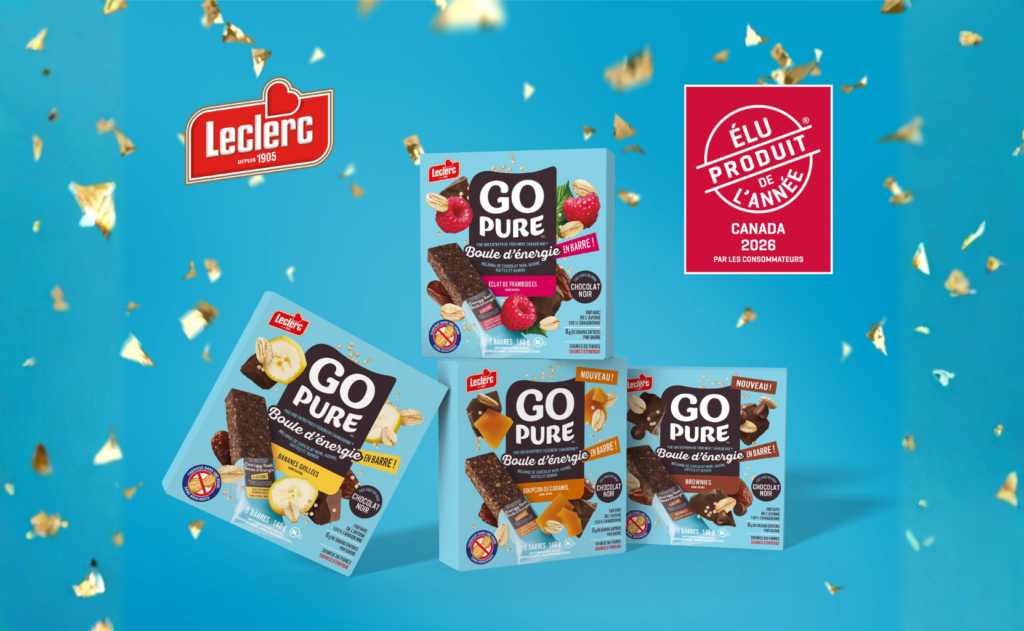 Nos produits Go Pure Boule d'énergie en barre ont remporté le titre de produit de l’année 2026 dans la catégorie « Collations énergétiques ». Au Canada, cette distinction est attribuée à la suite d’un sondage mené auprès de 4 000 consommateurs, réalisé par la firme de recherche Kantar.