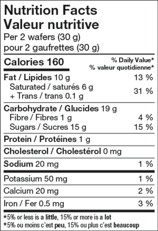 Milk chocolate (sugar, cocoa butter, chocolate liquor, milk ingredients, soya lecithin, vanilla extract), Sugar, Modified palm and palm kernel oils, Enriched wheat flour, Cocoa powder, Canola oil, Cellulose powder, Soya lecithin, Artificial flavour, Salt. Contains: Milk, Soya, Wheat.