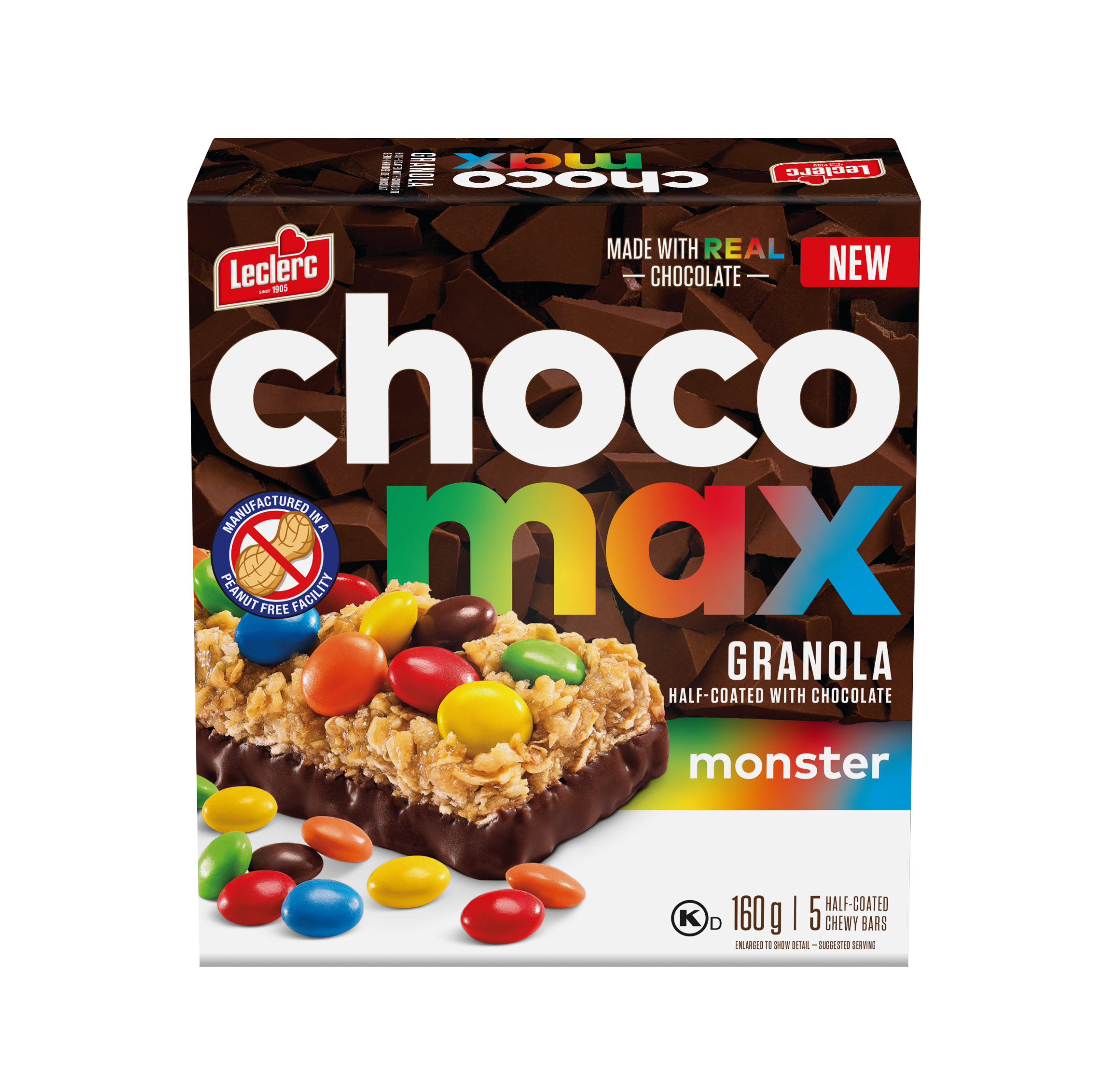 Granola (flocons d'avoine entière, sucre, huile de canola, mélasse qualité fantaisie, bicarbonate de sodium, lécithine de soya, extrait de romarin, acide ascorbique), Sucres (glucose, fructose, miel), Chocolat au lait (sucre, beurre de cacao, liqueur de chocolat, substances laitières, lécithine de soya, extrait de vanille), Flocons d'avoine entière, Mini bonbons au chocolat colorés (chocolat au lait [sucre, beurre de cacao, liqueur de chocolat, substances laitières, lécithine de soya, sel, arôme naturel], sucre, gomme arabique, sirop de maïs, cire de carnauba, gomme laque, cire d'abeilles, tartrazine, jaune soleil FCF, rouge allura, bleu brillant FCF, indigotine), Riz croustillant (farine de riz, sucre, carbonate de calcium, sel), Huile de canola, Glycérine, Arôme naturel, Lécithine de soya, Sel, Flocons de blé, Extrait de romarin, Acide ascorbique.