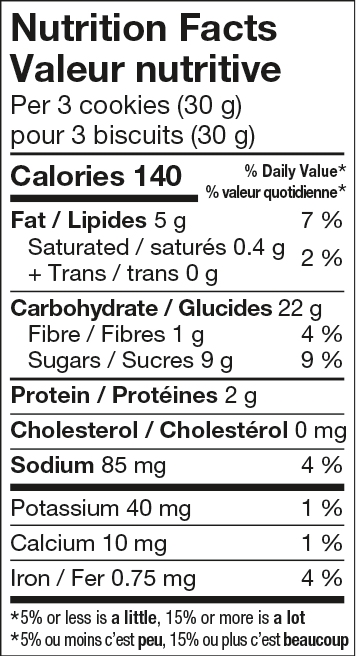 Enriched wheat flour, Sugars (sugar, fancy molasses), Canola oil, Corn maltodextrin (fibre), Ginger, Sodium bicarbonate, Liquid whole egg, Salt, Modified milk ingredients, Soya lecithin. Contains: Eggs, Milk, Soya, Wheat.