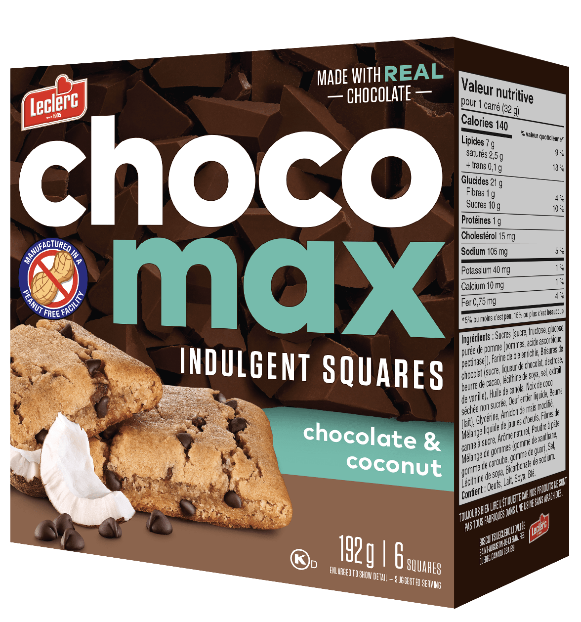An irresistible soft texture that will please your palate like never before. We love them for their chocolate and coconut flavour, but also because of their portability (6 pouches per box). Furthermore, they are the perfect snack for your lunch box as they are certified peanut-free.