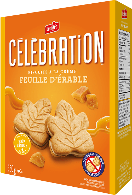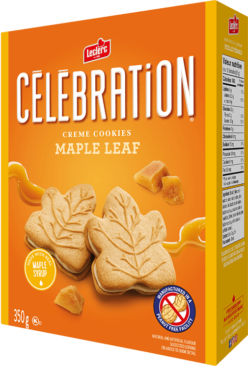 Cookie (enriched wheat flour, sugar, palm oil, maple syrup, salt, sodium bicarbonate, soya lecithin, modified milk ingredients), Creme (sugar, palm oil, soya lecithin, natural and artificial flavour, caramel). Contains: Milk, Soya, Wheat.