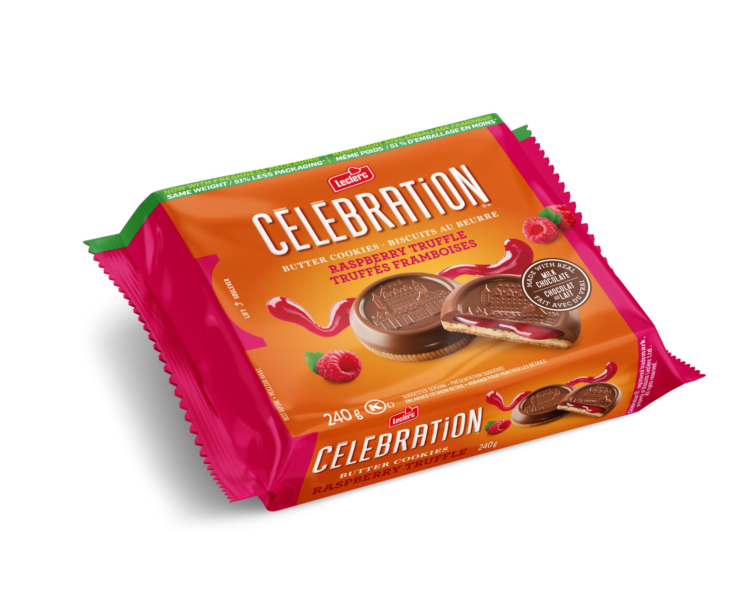 Chocolat au lait (sucre, beurre de cacao, liqueur de chocolat, substances laitières, lécithine de soya, vanilline), Farine de blé enrichie, Garniture aux framboises (sucre, glucose, purée de framboises, fructose, eau, pectine, acide citrique, arôme naturel, citrate de sodium, benzoate de sodium, sorbate de potassium, agar-agar, rouge allura), Sucre, Beurre (lait), Sel, Bicarbonate de sodium, Lécithine de soya, Arôme artificiel.