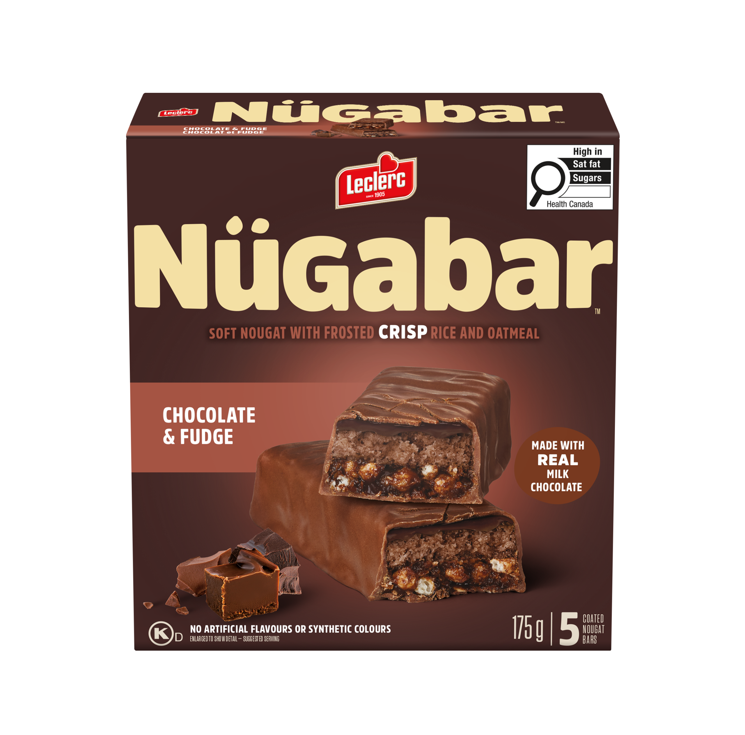Sucres (glucose, sucre, sucre à glacer, fructose, miel), Chocolat au lait (sucre, beurre de cacao, liqueur de chocolat, substances laitières, lécithine de soya, extrait de vanille), Fondant chocolaté au fudge (sucre, glucose, huile de noix de coco, poudre de cacao, substances laitières modifiées, eau, monoglycérides, lécithine de soya, extrait de vanille), Riz croustillant givré (farine de riz, sucre, huile de canola, carbonate de calcium, sel, mélasse qualité fantaisie, bicarbonate de sodium, lécithine de soya), Flocons d'avoine entière, Huile de canola, Poudre de cacao, Glycérine, Substances laitières modifiées, Sel, Arôme naturel, Lécithine de soya, Amidon de blé, Beurre d'arachide, Beurre d'amande, Beurre de noix de cajou, Extrait de romarin, Acide ascorbique, Huile de tournesol.