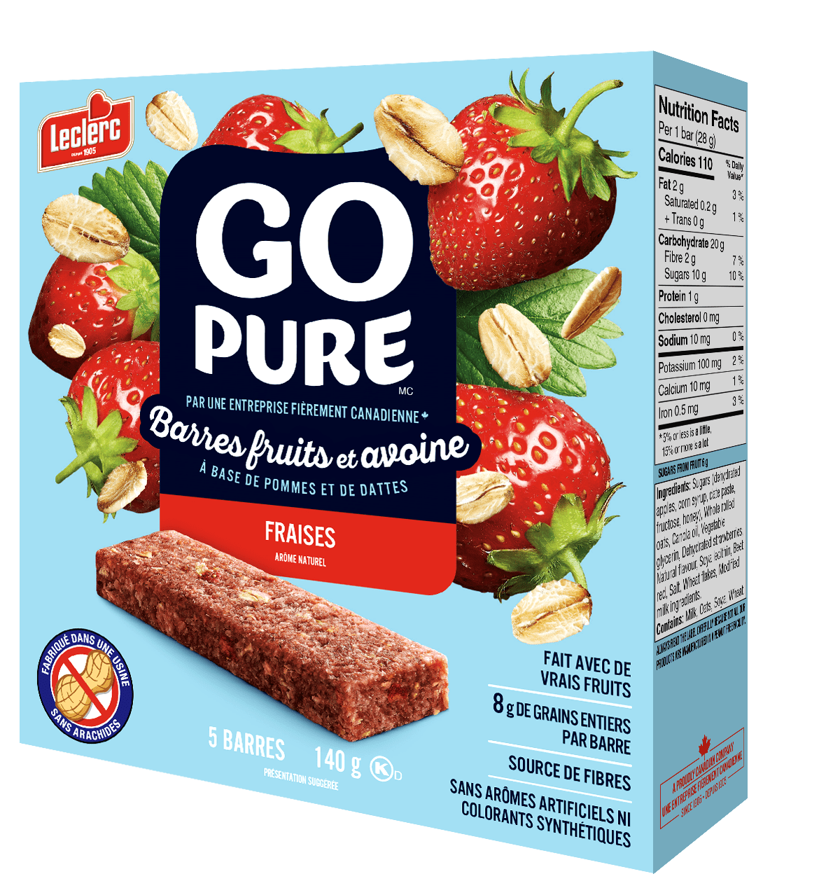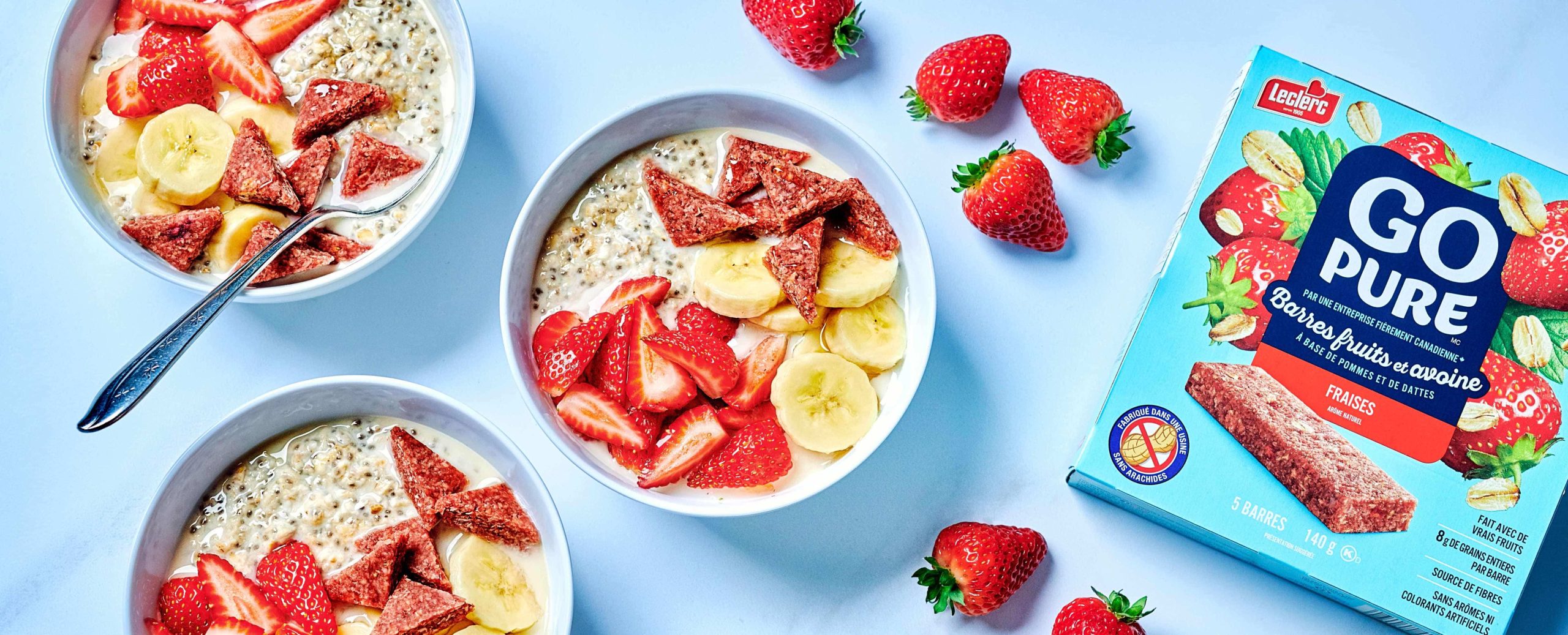 Servir le gruau dans un bol. Garnir de la demi-banane, des fraises et de la barre. Arroser d’un filet de miel, si désiré. Servir aussitôt.